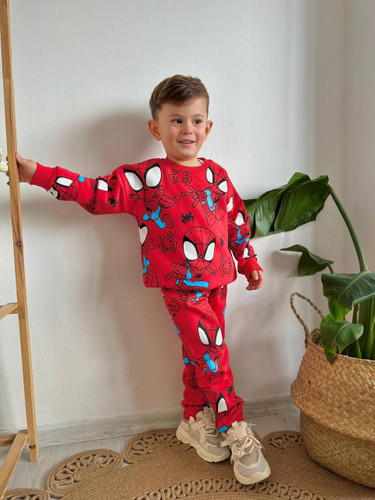 بلوز و شلوار قرمزپسرانه توکرکی ترک طرح اسپایدر من قرمز مناسب ۳تا ۱۰سال از برند زارا ترک،گرم و نرم و با کیفیت- لباس مناسب یلداناموجود