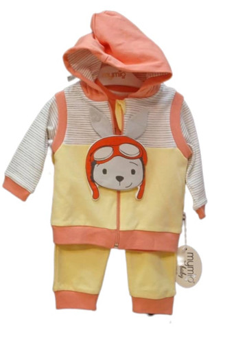 ست ۳تکه لباس نوزادی ترک برند mymio با کیفت عالی شمل بلوز آستین بلند و شلوار و ژیله کلاه دار