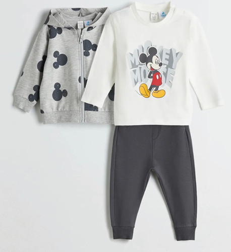 ست ۳تکه ،سوئیشرت و بلوز و شلوار نوزادی ازاورجینال برند السی وایکیکی ،نخ پنبه و نرم و لطیف طرح میکی موس از ۱۲ماه تا۳۶ماه