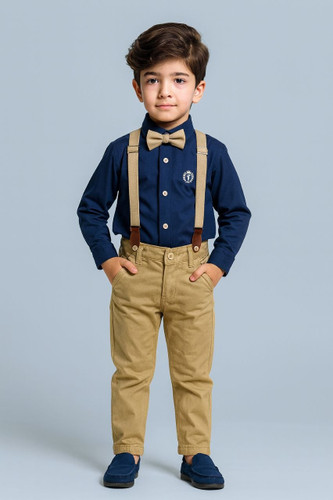 ست ۴تکه لباس پسرانه ترک برندTogi -شامل پیراهن و پایپون و ساسبند و شلوار کتان مناسب از۶تا۹سال