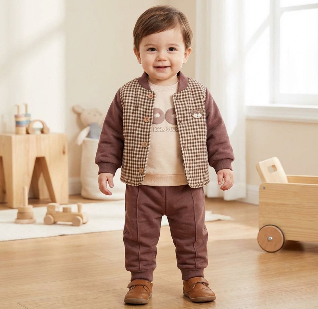 ست سه تیکه پسرانه ترک gucci شامل بلوز و شلوار و پافر بسیار شیک و باکیفیت 3 تا 12 سال