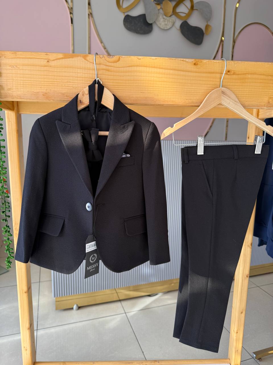 ست ۴تکه پسرانه ترک شامل کت و شلوار و جلیقه و پاپیون -رنگ مشکی-خوش استایل-مناسب از ۸تا ۱۲سال