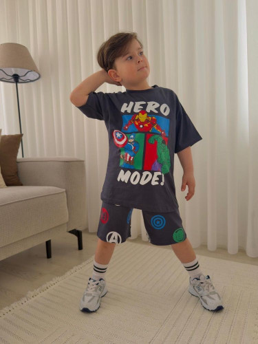 تیشرت و شلوارک پسرانه ترک طرح Hero محبوب-نرم و لطیف و جدید-سایزبندی از ۳تا۱۹سال