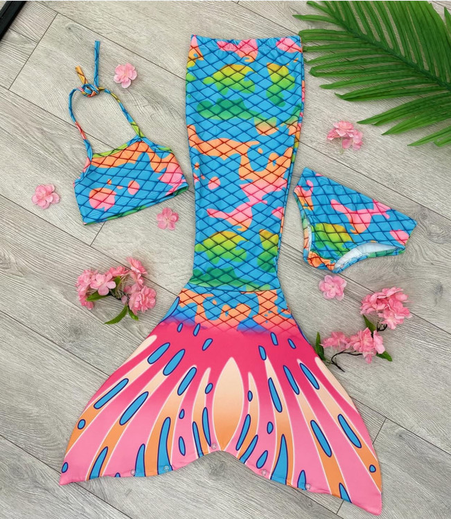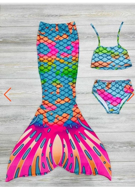 ست سه تکه مایو( شورت و بالاتنه و دم پری دریایی ) مدل پری دریایی ترک 3 تا 12 سال با کیفیت عالی