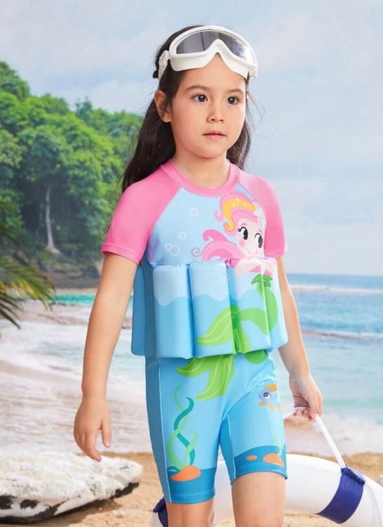 مایودخترانه پری دریایی فوم دار کودک از اورجینال برند sheinمناسب از ۳تا ۷سال- مایو آموزشی