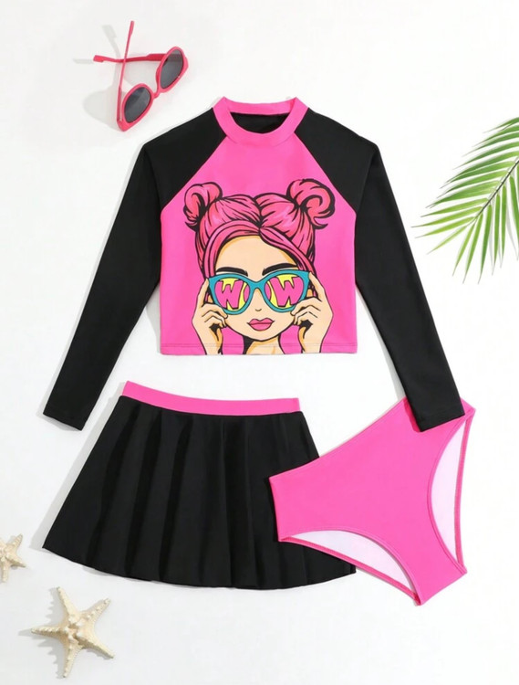 مایو ۳تکه باربی نیو کالکشن اورجینال برند shein خاص و شیک مناسب از8تا 12سال