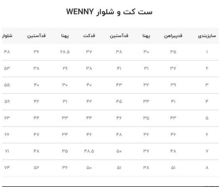 قد 49 جلوسینه35 استین از یقه 51 شلوار69 عرض کمر 31