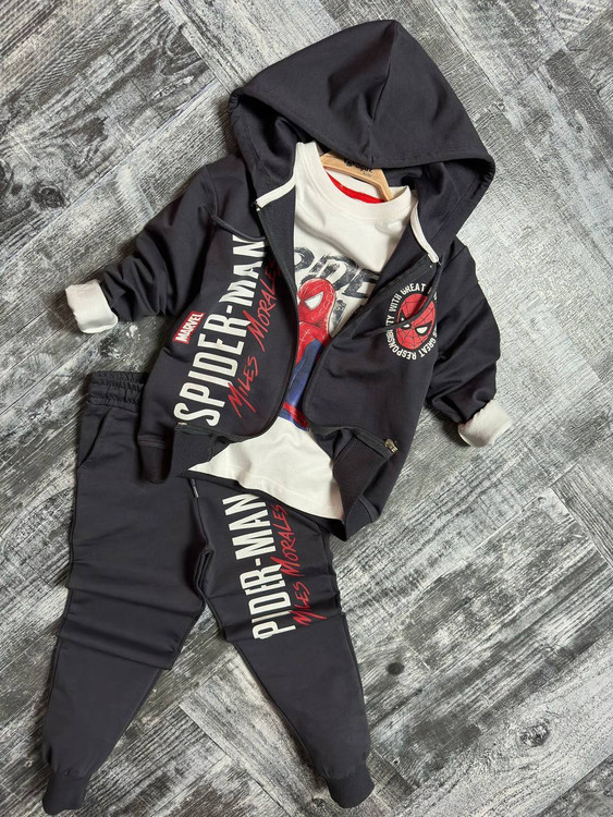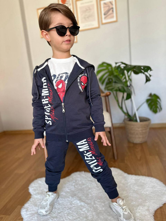 ست 3 تکه پسرانه اسپایدرمن ترک .شیک و با کیفیت از 3 تا 10 سال- شامل بلوز آستین بلند و سوئیشرت و شلوار اسپایدرمن