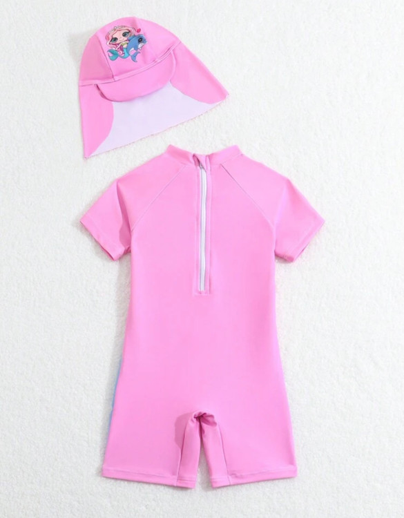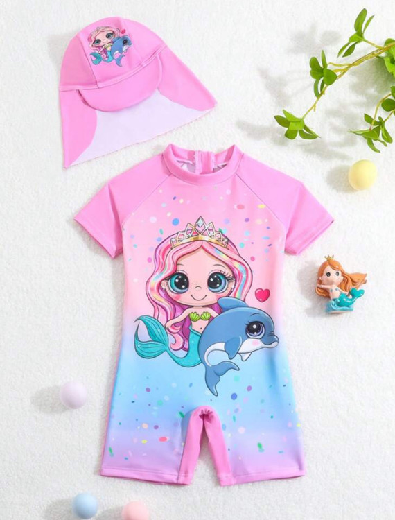 مایو با کلاه کیوت و جدید وارداتی دخترانه - باکیفیت و شیک از 12 ماه تا 36 ماه- مایو نوزادی خاص