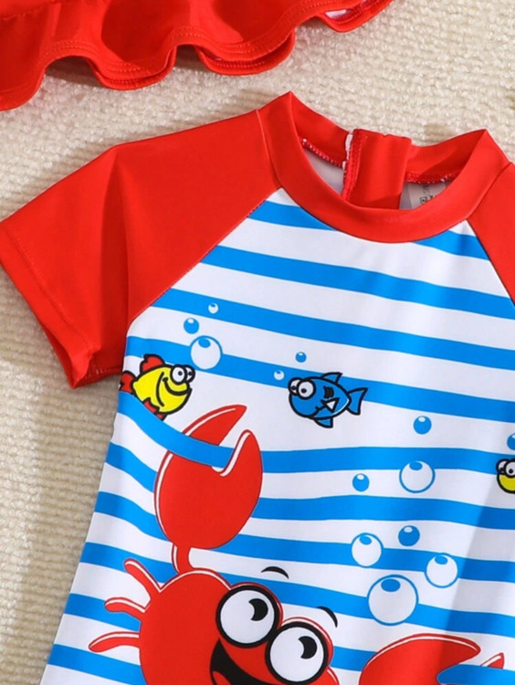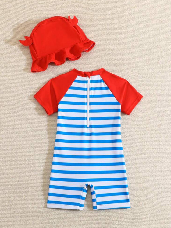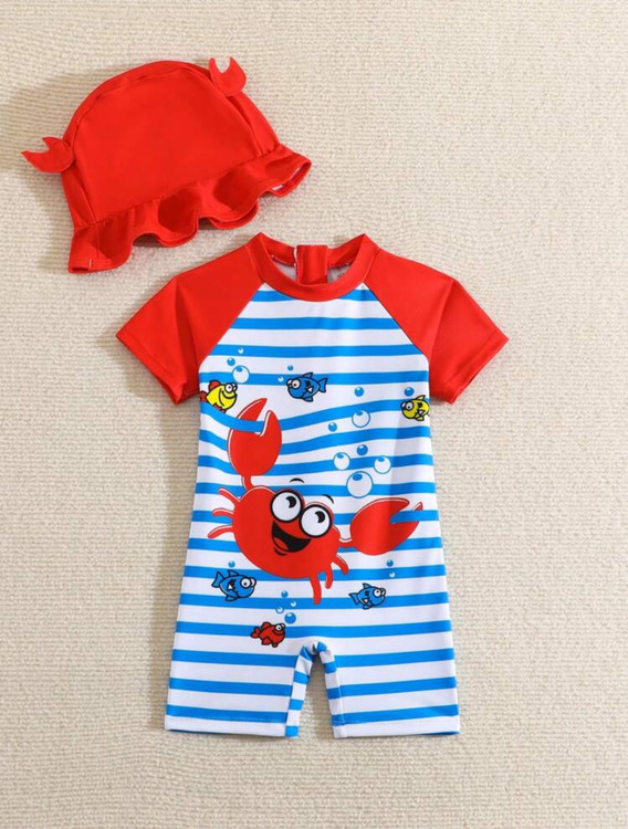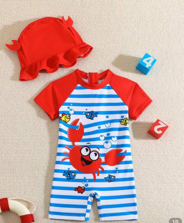 مایو یکسره نوزادی دخترانه با کلاه از اورجینال برند shein -خیلی ناز و با کیفیت و ضد حساسیت و ضد کلر مناسب از 1 تا 3 سال