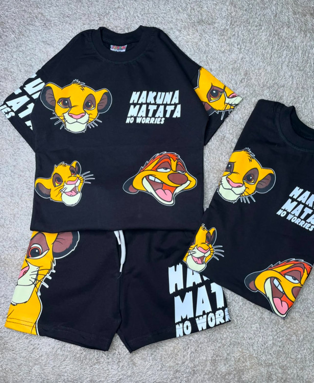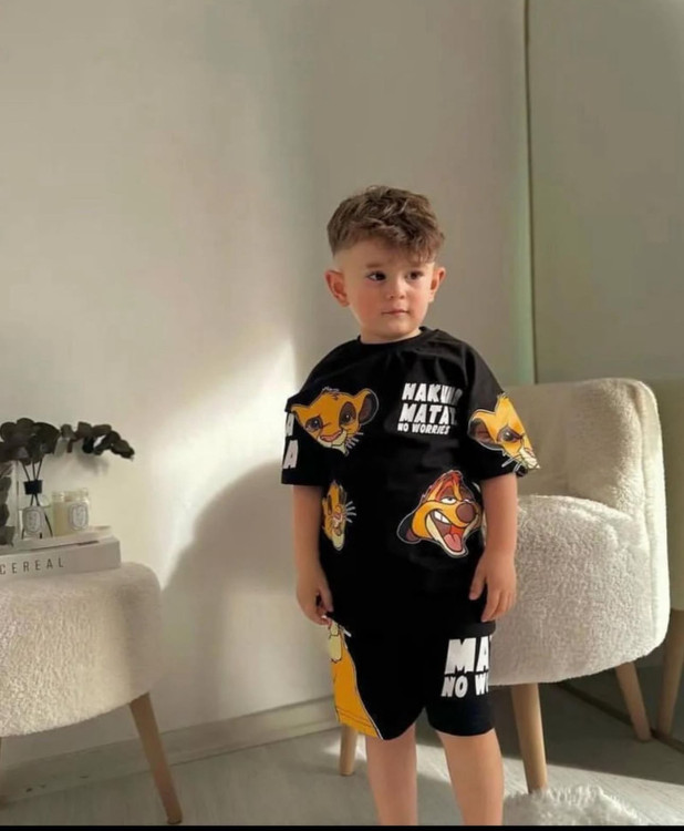 تیشرت و شلوار پسرانه ترک طرح سیمبا پر طرفدار - ترکیب رنگ مشکی و نارنجی و زرد جذاب با کیفیت عالی از 3 تا 10 سال