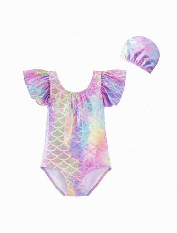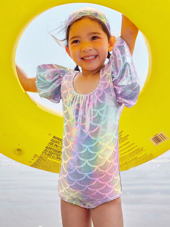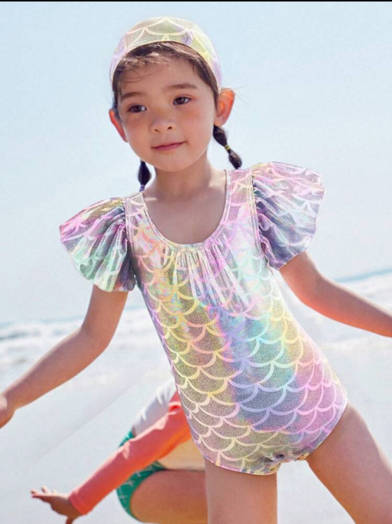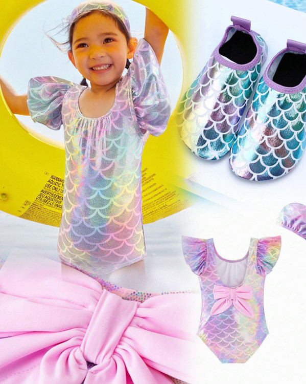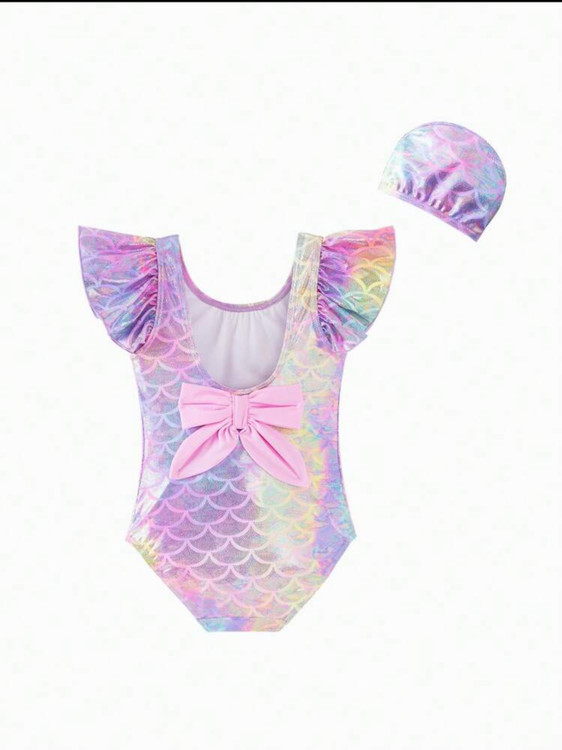 مایو دخترانه پری دریایی هفت رنگ شاین با کلاه از نیو کالکشن اورجینال برند shein-خاص و با کیفیت عالی از ۳تا ۱۰سال