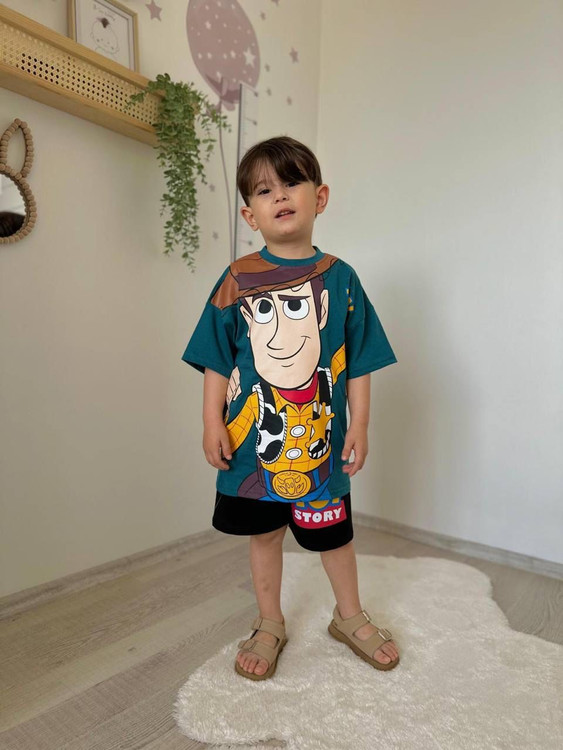ست دو تکه تیشرت شلوارک پسرانه ترک مدل شهر اسباب بازی ها- کلانتر وودی محبوب- با کیفیت و خوشرنگ و چرکتاب