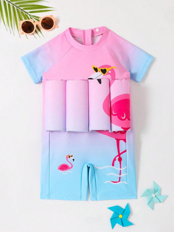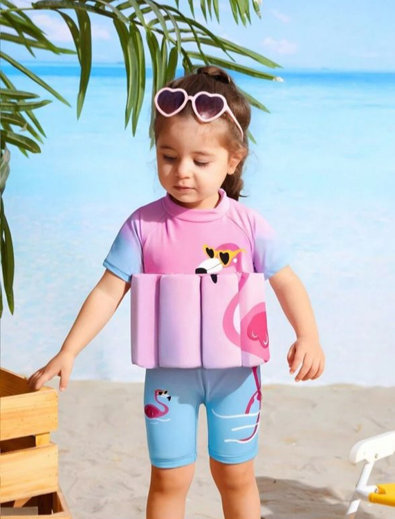 مایو آموزشی فومدار طرح فلامینگو استوایی اورجینال برند shein ضد کلر و حساسیت مناسب ۱ تا ۷ سال