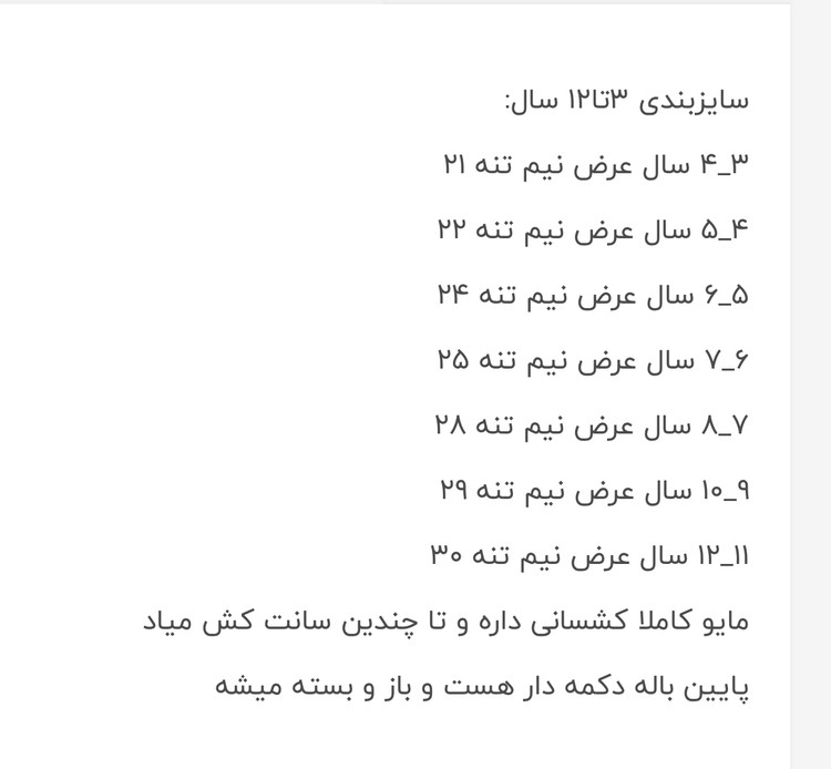 ۱۱_۱۲ سال عرض نیم تنه ۳۰