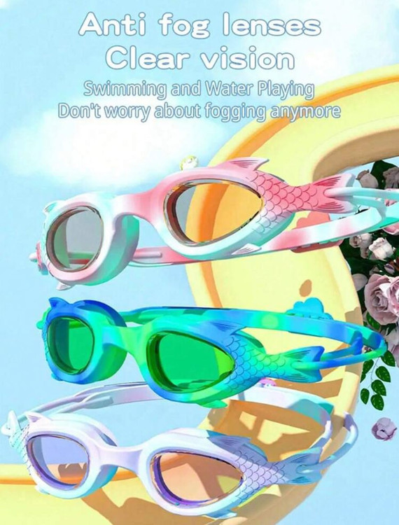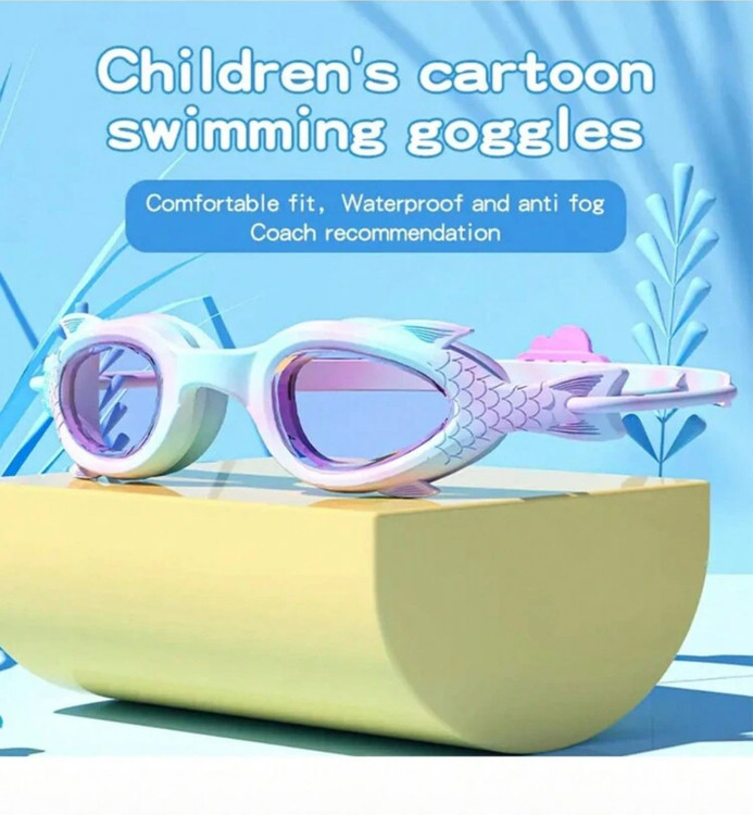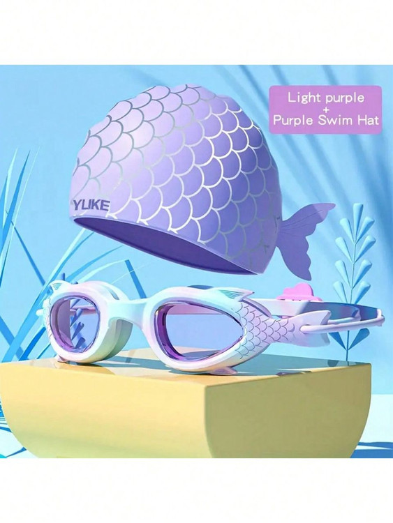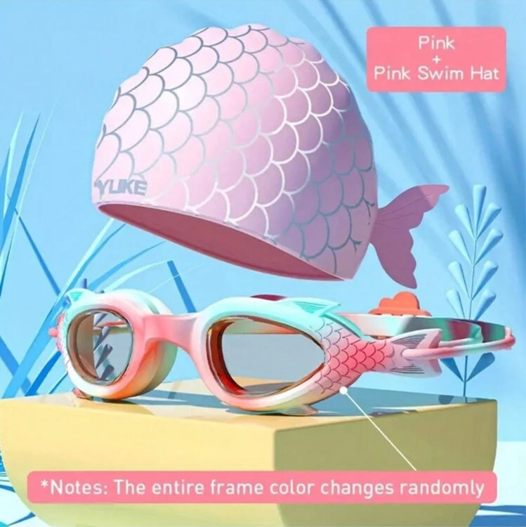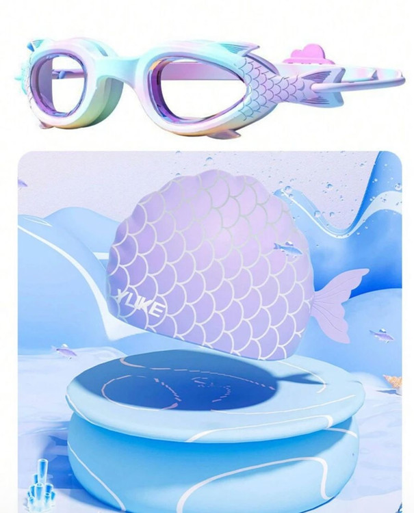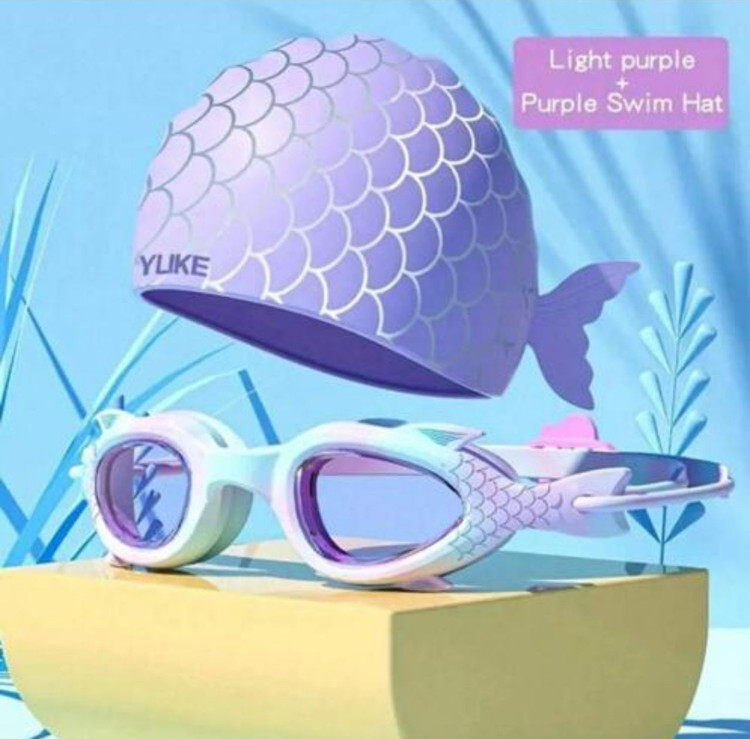 عینک و کلاه شنا دخترانه طرح پری دریایی در دو رنگ بنفش و صورتی بسیار با کیفیت وارداتی مناسب ۶ تا ۹ سال