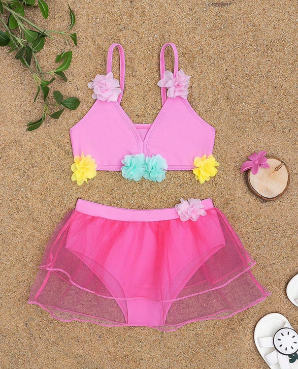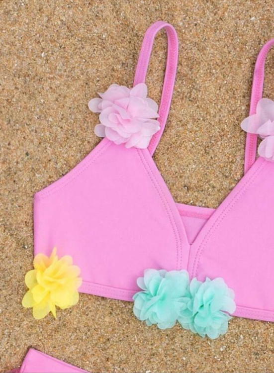 مایو دوتکه دخترانه صورتی ی ناز پایین تنه تور دار از اورجینال نیو کالکشن برند shein مناسب 6تا 7سال