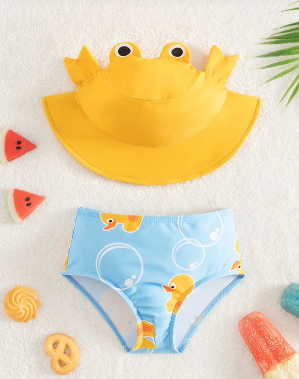 مایو نوزادی اردکی همراه با کلاه خرچنگی از نیو کالکشن اورجینال برند shein مناسب 1تا 2سال
