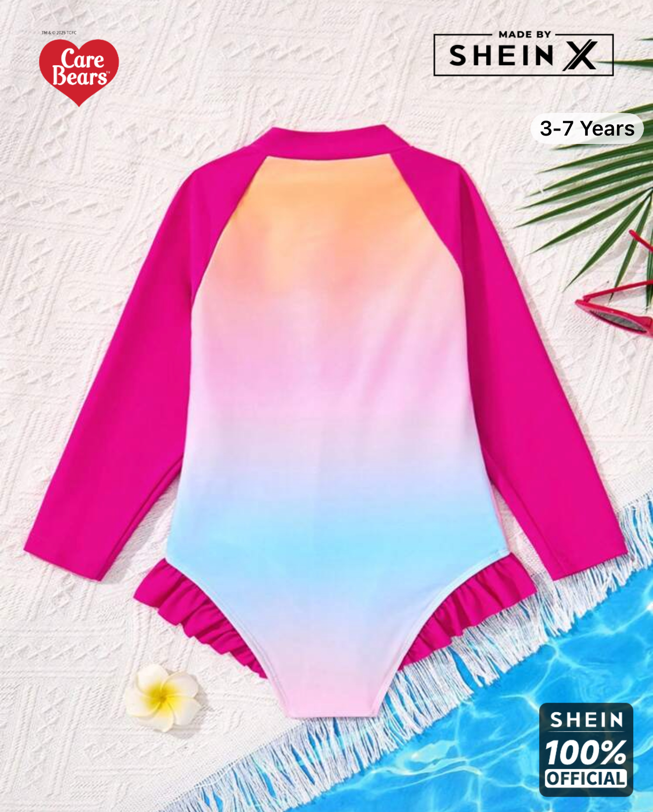 مایو یکسره دخترانه آستین دار از اورجینال برندshein -ضدحساسیت و با کیفیت عالی مناسب ۴ سال
