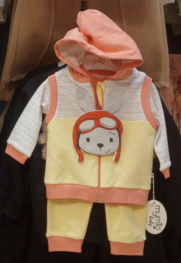 ست ۳تکه لباس نوزادی ترک برند mymio با کیفت عالی شمل بلوز آستین بلند و شلوار و ژیله کلاه دار