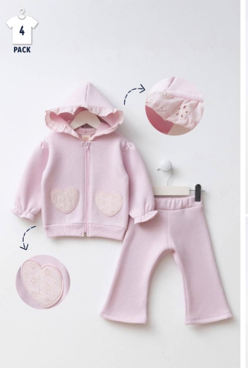 نیو کالکشن سوئیشرت کلاه دار با شلوار نوزادی دخترانه -تو کرکی - از برند minipodyum ترک-خیلی لطیف و ناز و خوشرنگ از ۶ماه تا ۲۴ماه