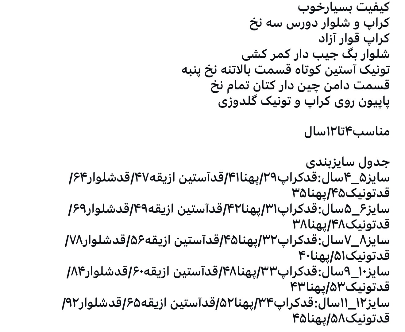 لطفا به اندازه ها توجه کنید قواره کراپ و شلوار بزرگ می باشد