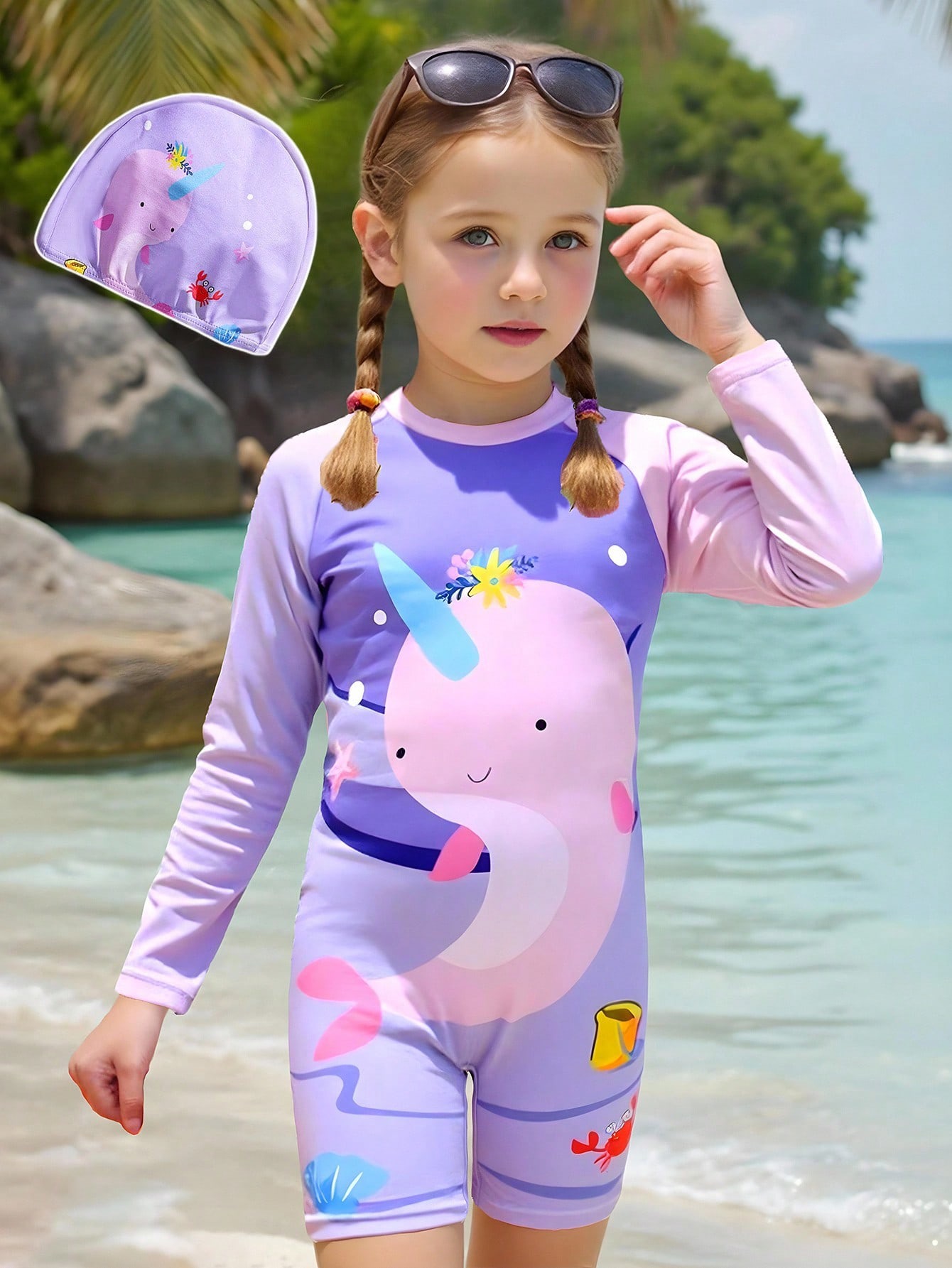 مایو پوشیده پادار با کلاه دخترانه از اورجینال برند shein از ۴تا۷سال