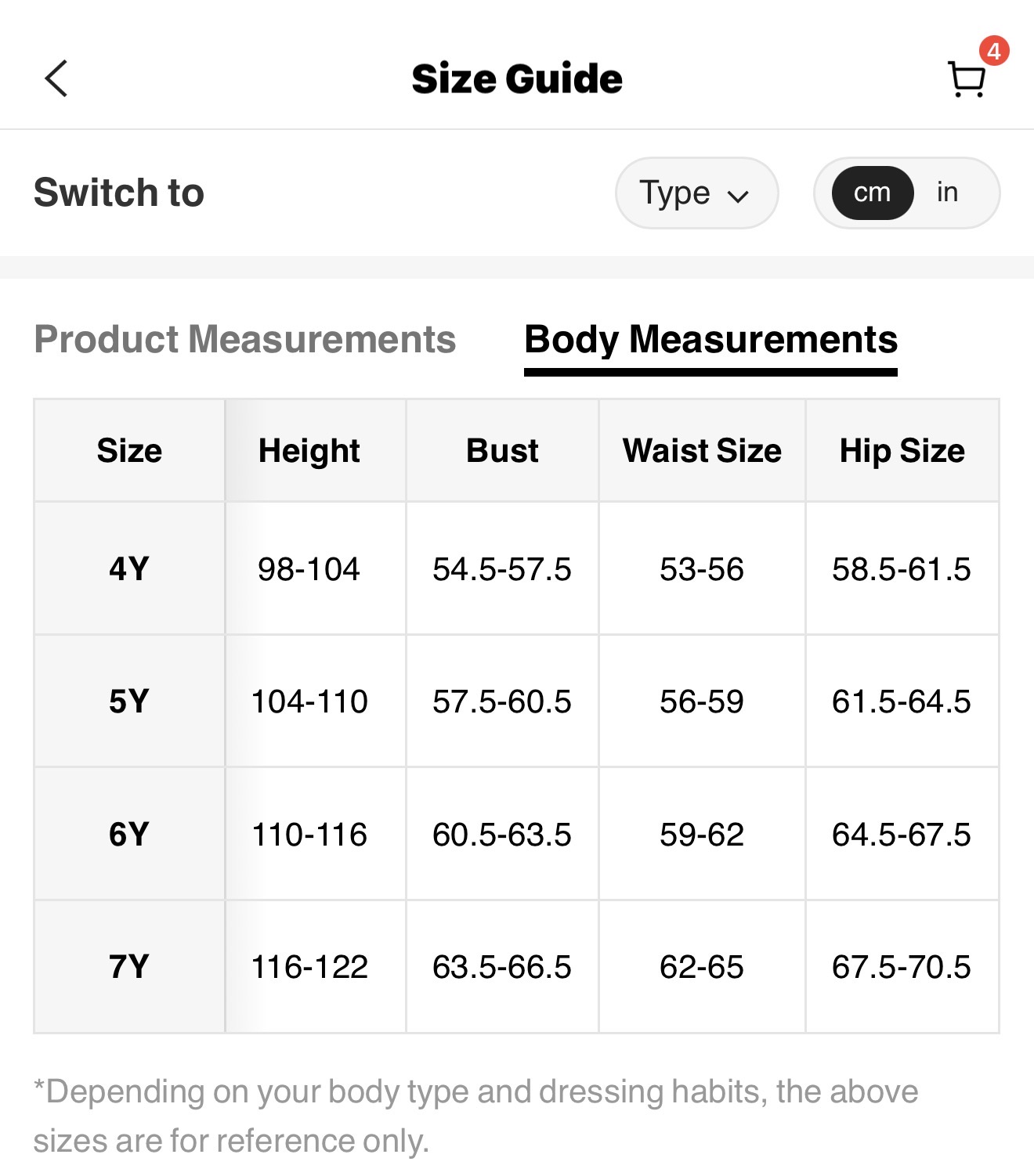 ۴سال(۹۸-۱۰۴cm)