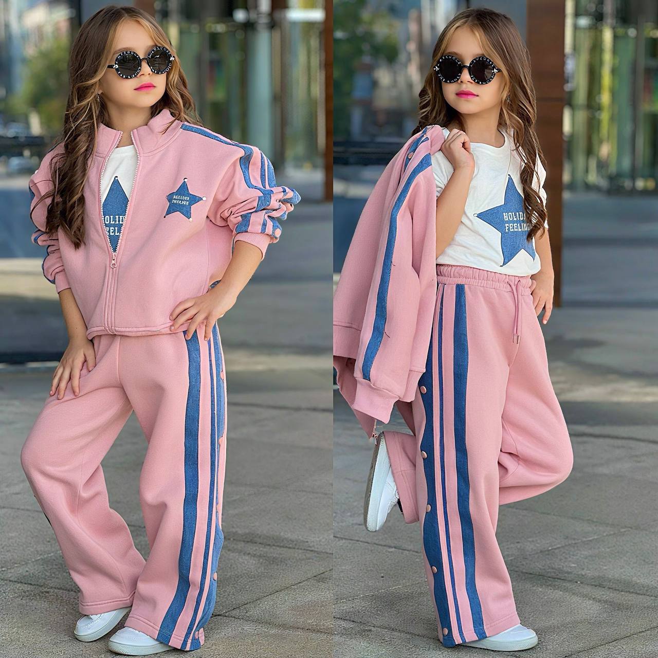 ست ۳تکه هودی و شلوار تو کرکی به رنگ مشکی و تیشرت ستاره ای سفید دخترانه ترک-باکیفیت عالی و گرم و نرم و خوش استایل از ۵تا ۱۴سال