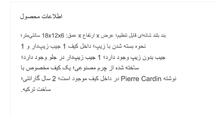 اندازه و مشخصات در عکسها
