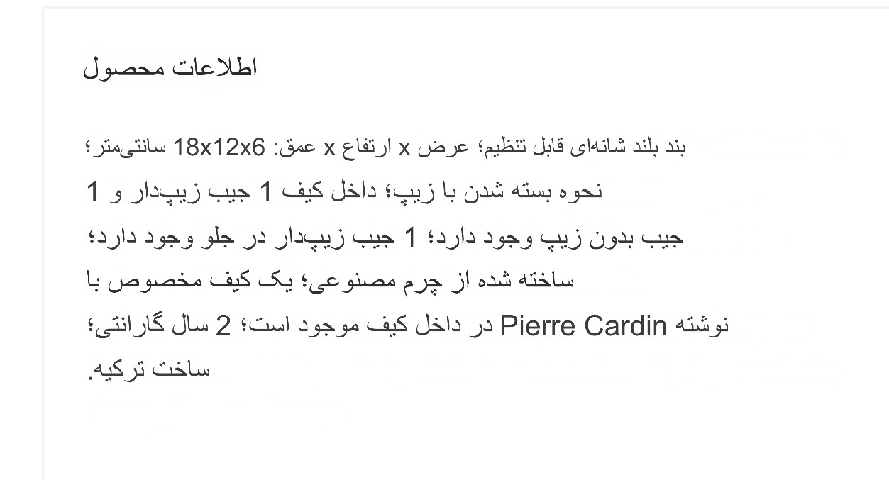 اندازه و مشخصات در عکسها