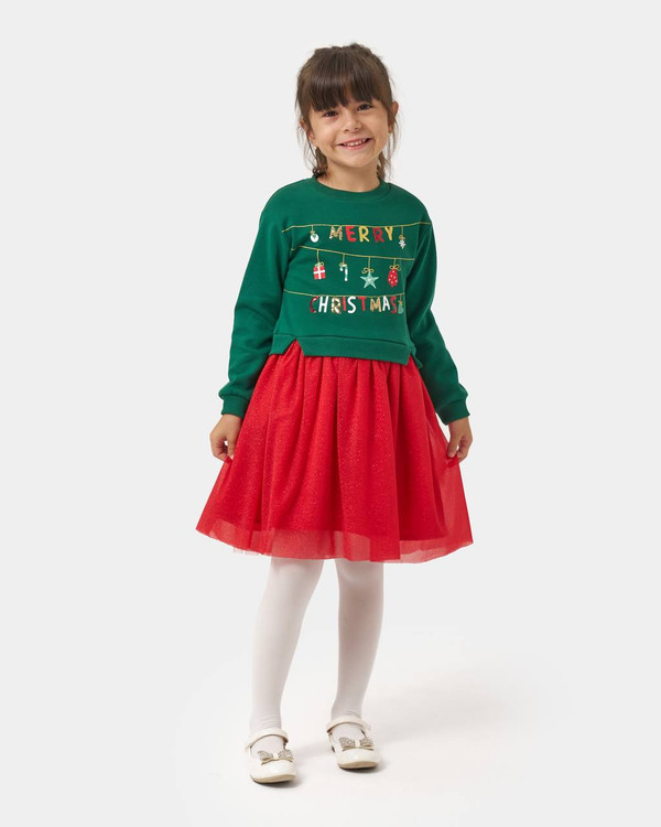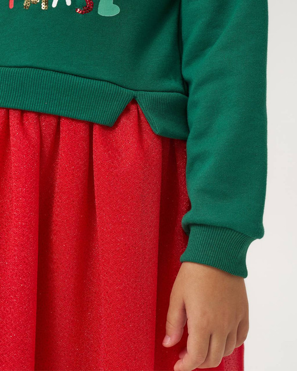 پیراهن کریسمسی و یلدایی دخترانه ترک،توکرکی خفیف، کیفیت عالی،دامن شاین داراز ۴تا۷سال
