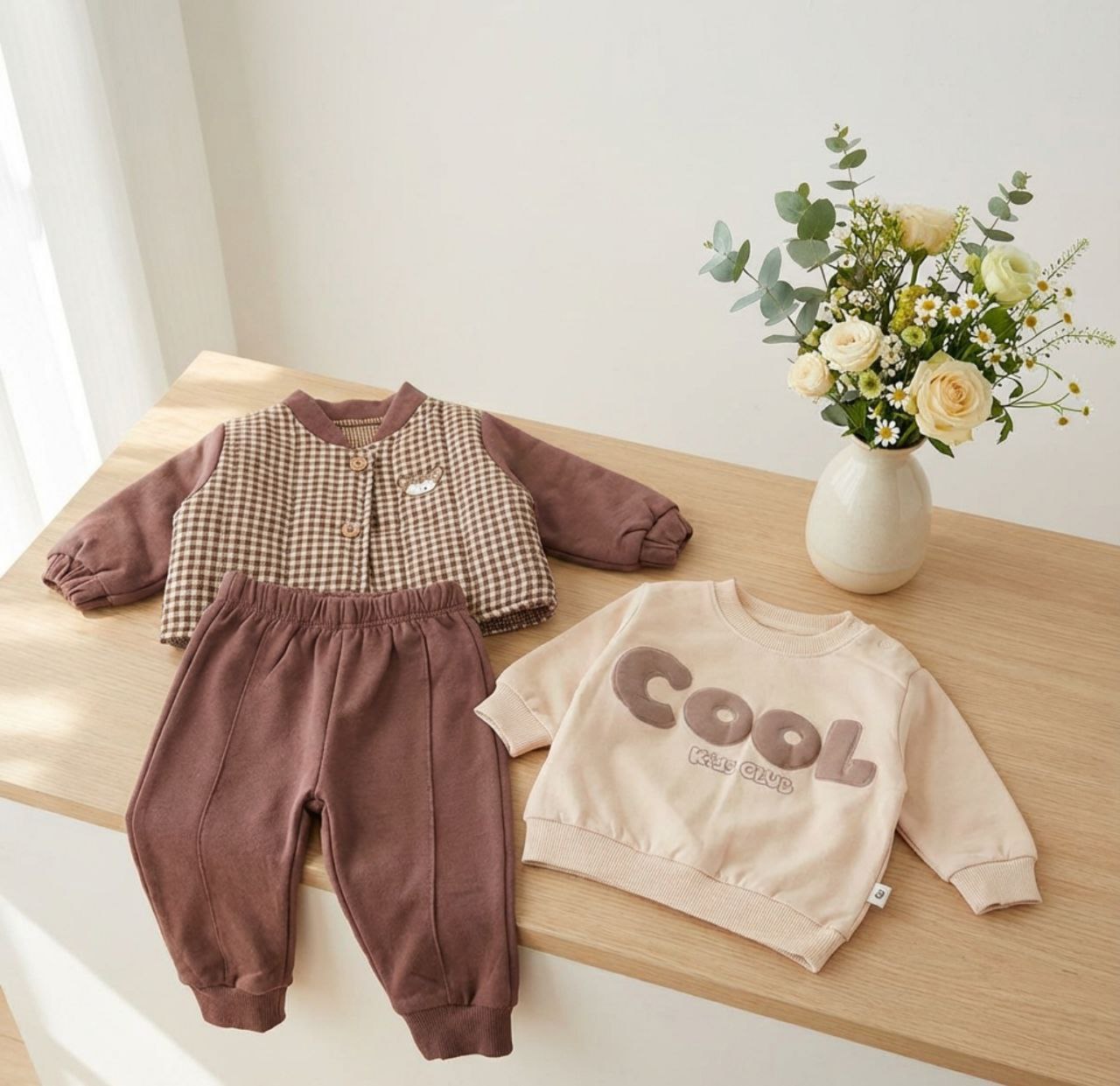 جدیدترین ست ۳تکه نوزادی خرسی ترک -۳نخ و کیفیت عالی و نخ پنبه از ۶ماه تا۱۸ماه