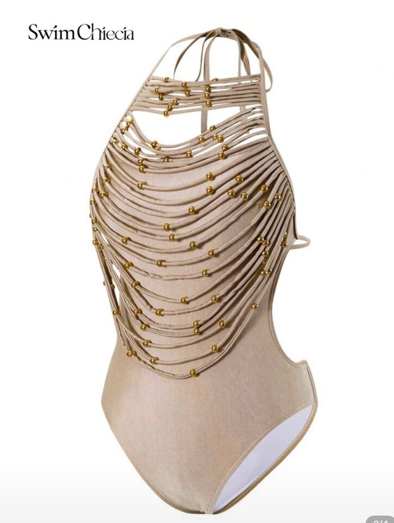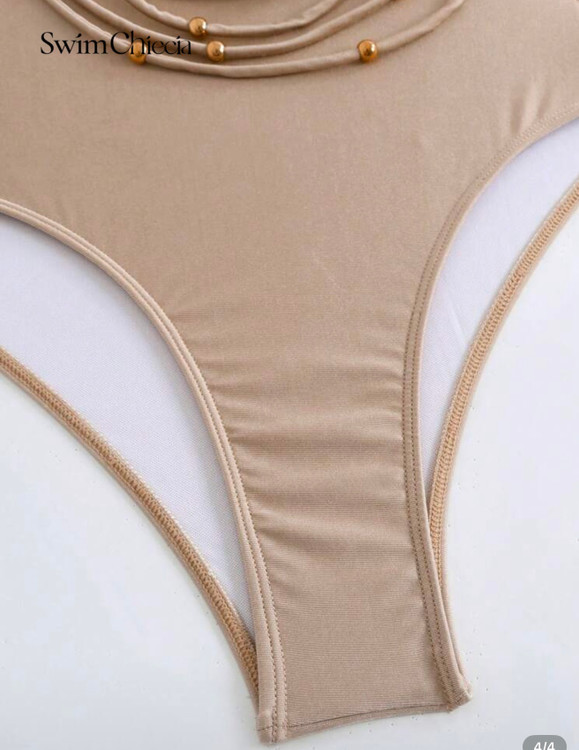 مایو زنانه مرواریدی جدید از اورجینال برند shein با کیفیت عالی سایز لارج-رنگ قهوه ای کم رنگ (نسکافه ای)