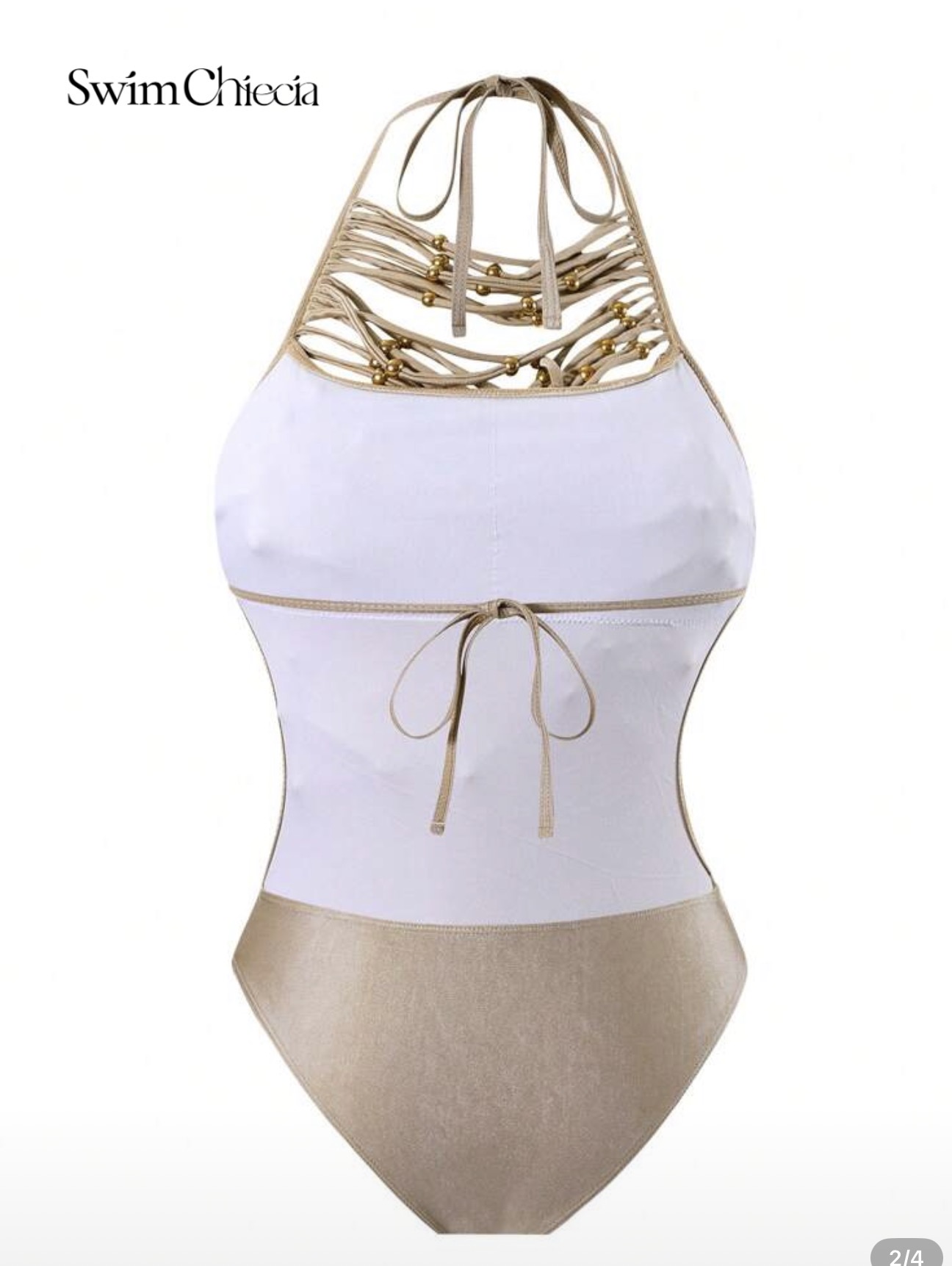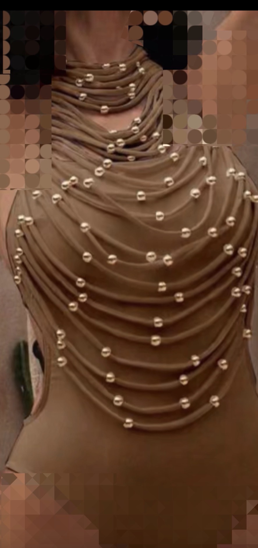 مایو زنانه مرواریدی جدید از اورجینال برند shein با کیفیت عالی سایز لارج-رنگ قهوه ای کم رنگ (نسکافه ای)