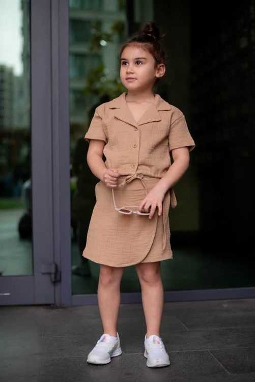 کراپ و دامن شلواری جدید دخترانه ترک -بیسکوئیتی -کیفیت عالی و خنک وشیک از ۳تا۱۰سال در دو رنگ
