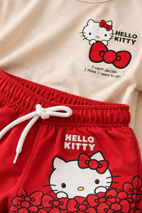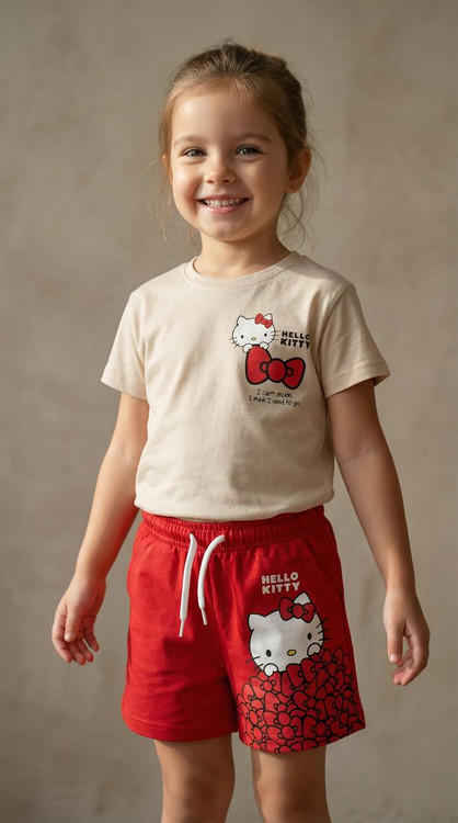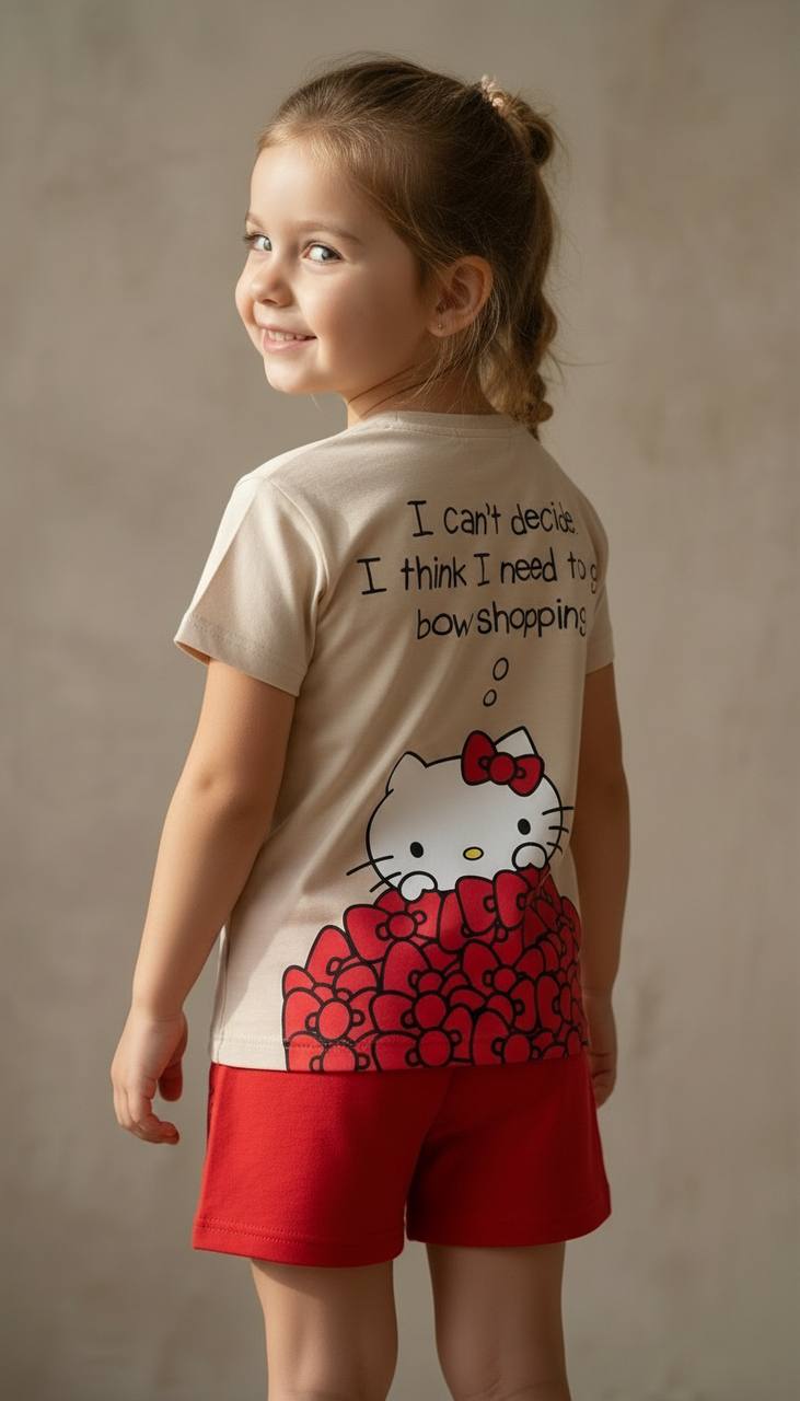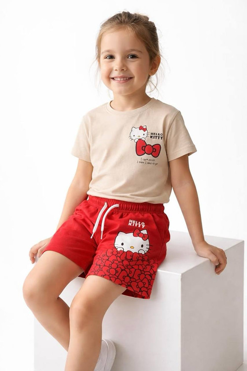 تیشرت و شلوارک دخترانه وارداتی طرح کیتی محبوب-با کیفبت عالی و خنک و نخ پنبه از ۳تا۱۰سال