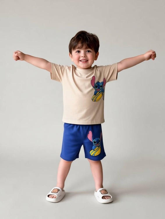 3-4سال : قد تیشرت 46 جلو سینه 38 قد شلوارک 34