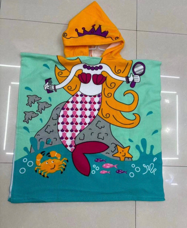 حوله پانچو دخترانه وارداتی-سبک و نازک و نرم و لطیف با کیفیت عالی - طرح پری دریایی -مناسب 2 تا 6 سال- ابعاد 61*61-ازبغل دکمه دارد